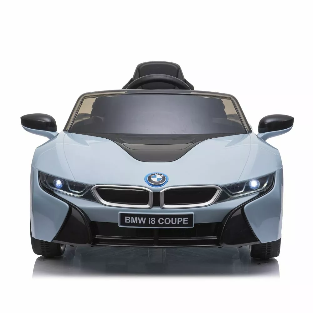 Børn vil elske denne rappe 12V NORDIC PLAY BMW i8 elbil. Bilen kan både styres manuelt, eller de kan få en voksen til at køre bilen med den medfølgende fjernbetjening. Bilen er produceret i en smart turkisblå farve med sort styling. Den er udstyret med skridsikker stødabsoberende EVA hjul der giver mindre støj og mere sikkerhed. Og med flotte BMW fælge. Samt begge døre kan åbnes. Der er flot LED lys foran og instrumentbrættet har smart design. Den er desuden udstyret med LCD voltmeter, så barnet kan se, hvornår der skal ”tankes” igen.