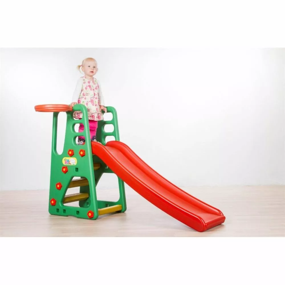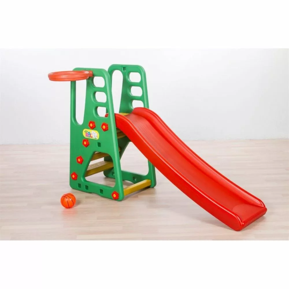Den fine rutsjebane med basketboldnet, lavet i robust materiale.