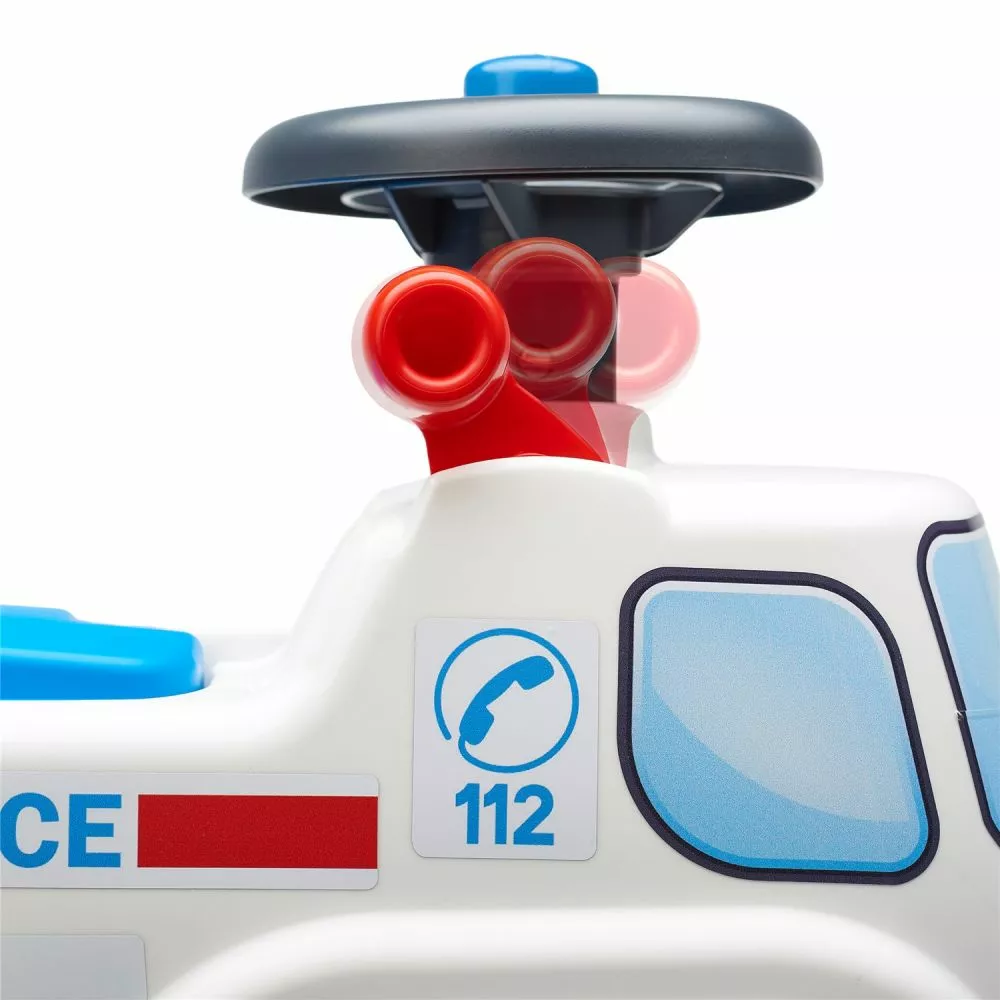 Vred din ven sin ankel? Vi er nødt til at sende hjælp hurtigt! Barnet suser afsted på sin ambulance, som er 100% lavet i Frankrig. Dit barn har ingen problemer med at manøvrere sig gennem huset og advare om sin ankomst med det drejbare rat med horn. Imens udvikles de motoriske færdigheder. Med opbevaringsrum skjult under sædet, kan barnet tage alt nødvendigt udstyr med sig. Det er muligt at lave sin egen nummerplade, hvor der kan stå navn eller køretøjets kælenavn.