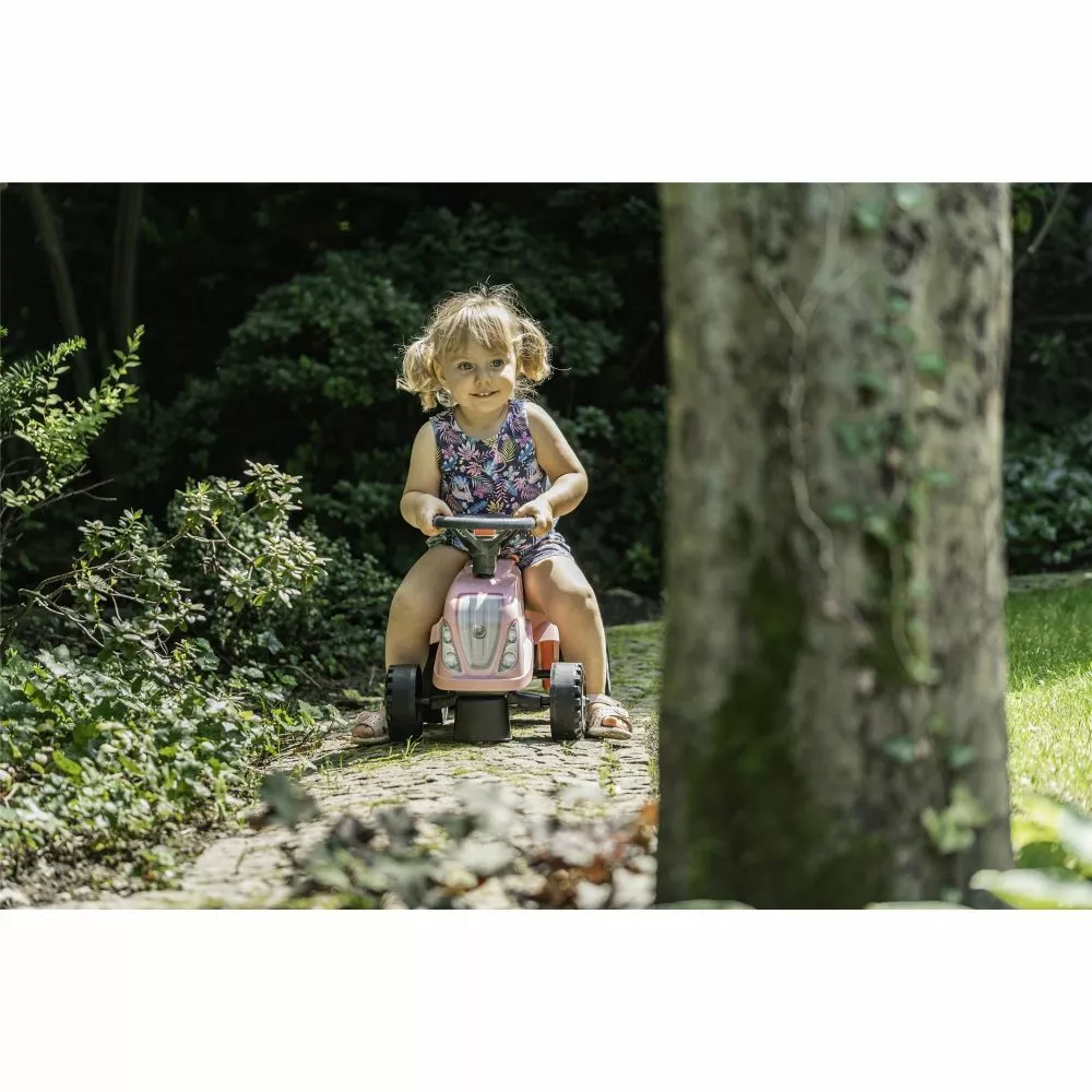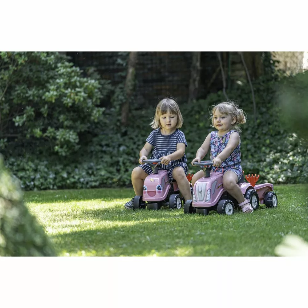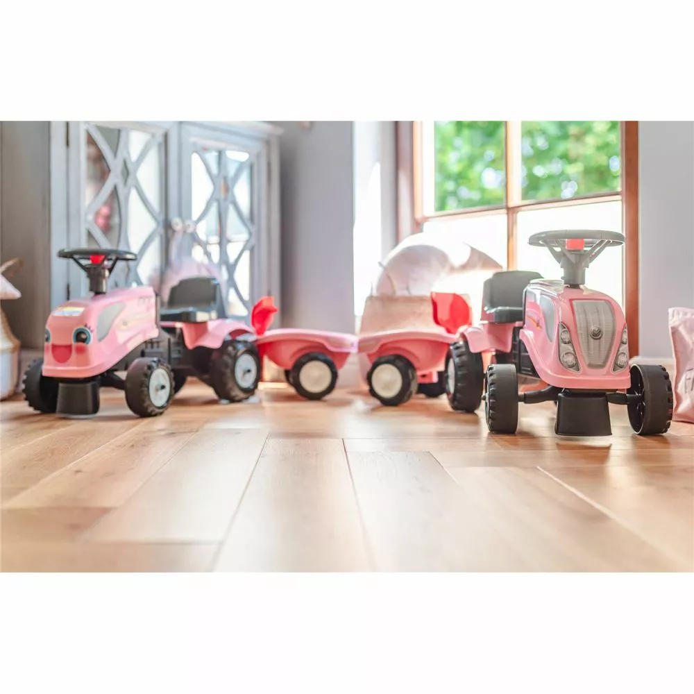 New Holland pink traktor 100% fremstillet i Frankrig til småbørn fra 1 år. Den er sjov med sine formede kurver, som vil gøre små gartnere glade. Dens lyse farver er perfekte til at vække opmærksomheden hos dit barn, og som også kan udvikle dets motoriske færdigheder og balance, mens barnet har det sjovt. Kan bruges både i haven eller indenfor takket være det drejbare rat med horn. Den søde lille traktor er udstyret med trailer med skovl og rive. Den kan nemt blive barnets foretrukne middel til at transportere deres yndlingstæppe fra soveværelset til stuen eller til små udendørs udflugter til f.eks. sandkassen. Et lille kit er inkluderet, hvilket giver dit lille barn mulighed for at vælge stil og en tilpasset nummerplade!
