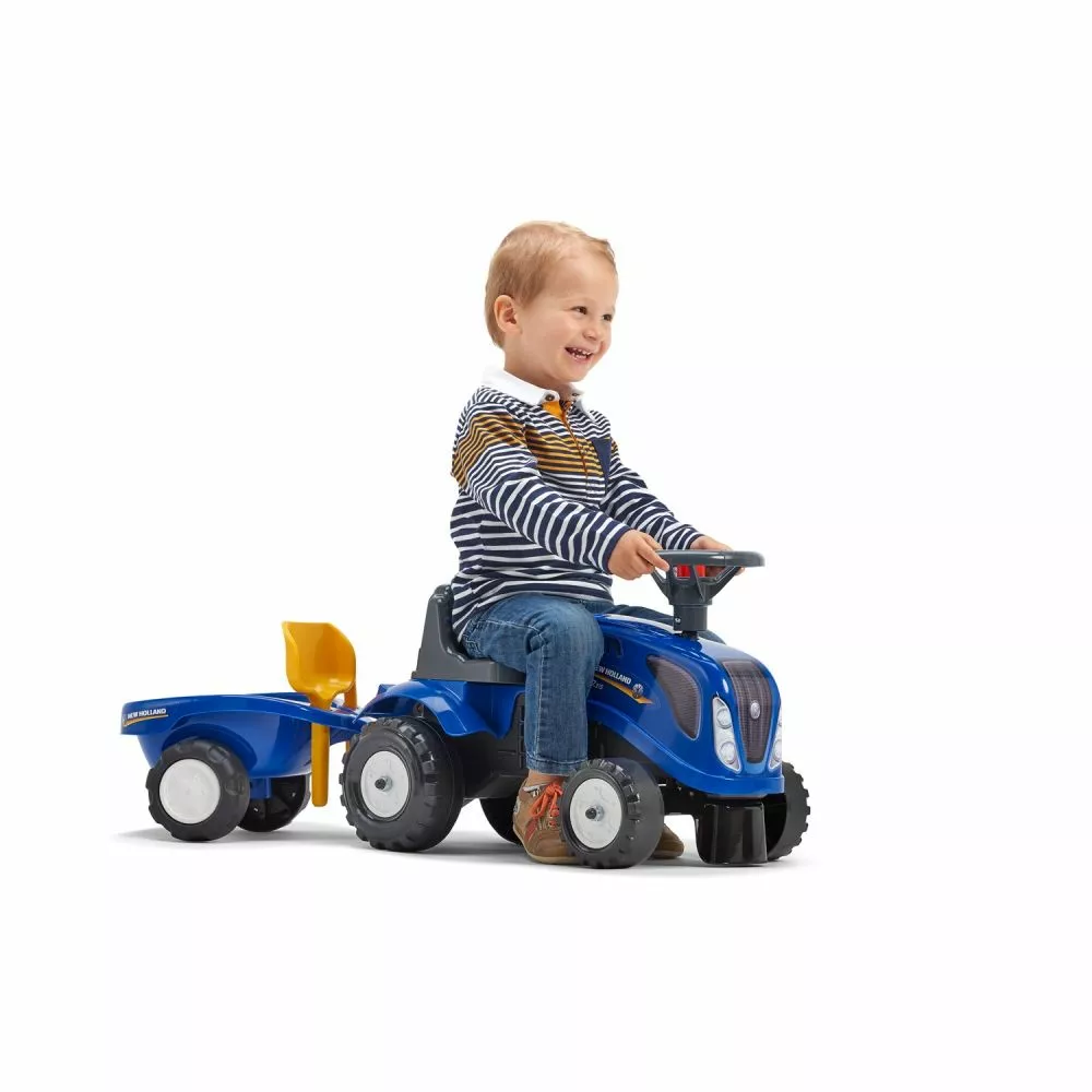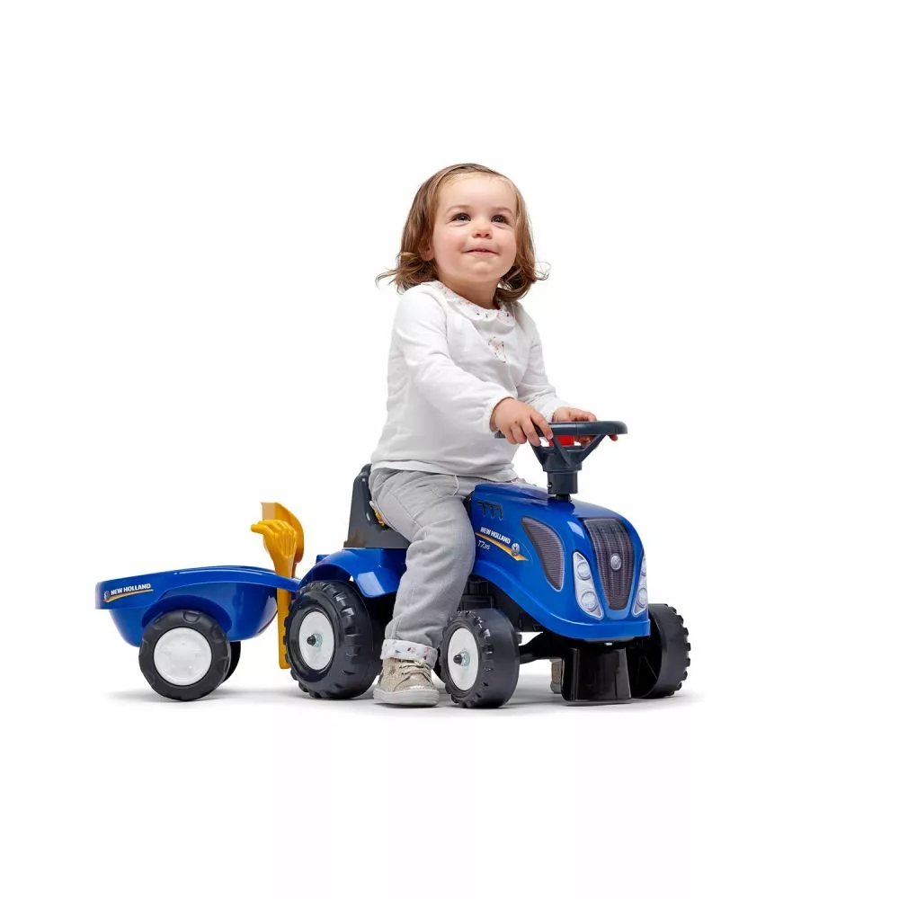 FALK Baby New Holland ride-on traktor med trailer, rive og skovl