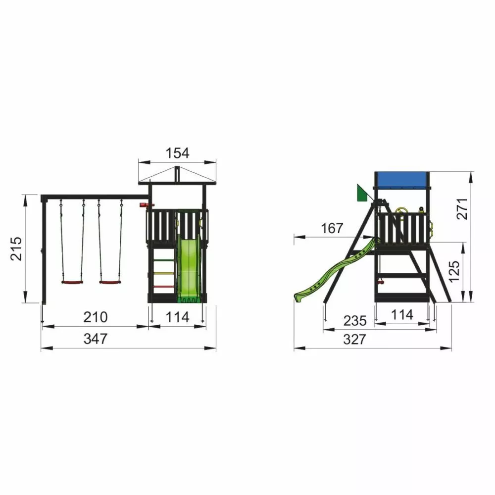Areal ekskl. sikkerhedsareal legetårn: B:319 x D:160 cm x H: 286 cm