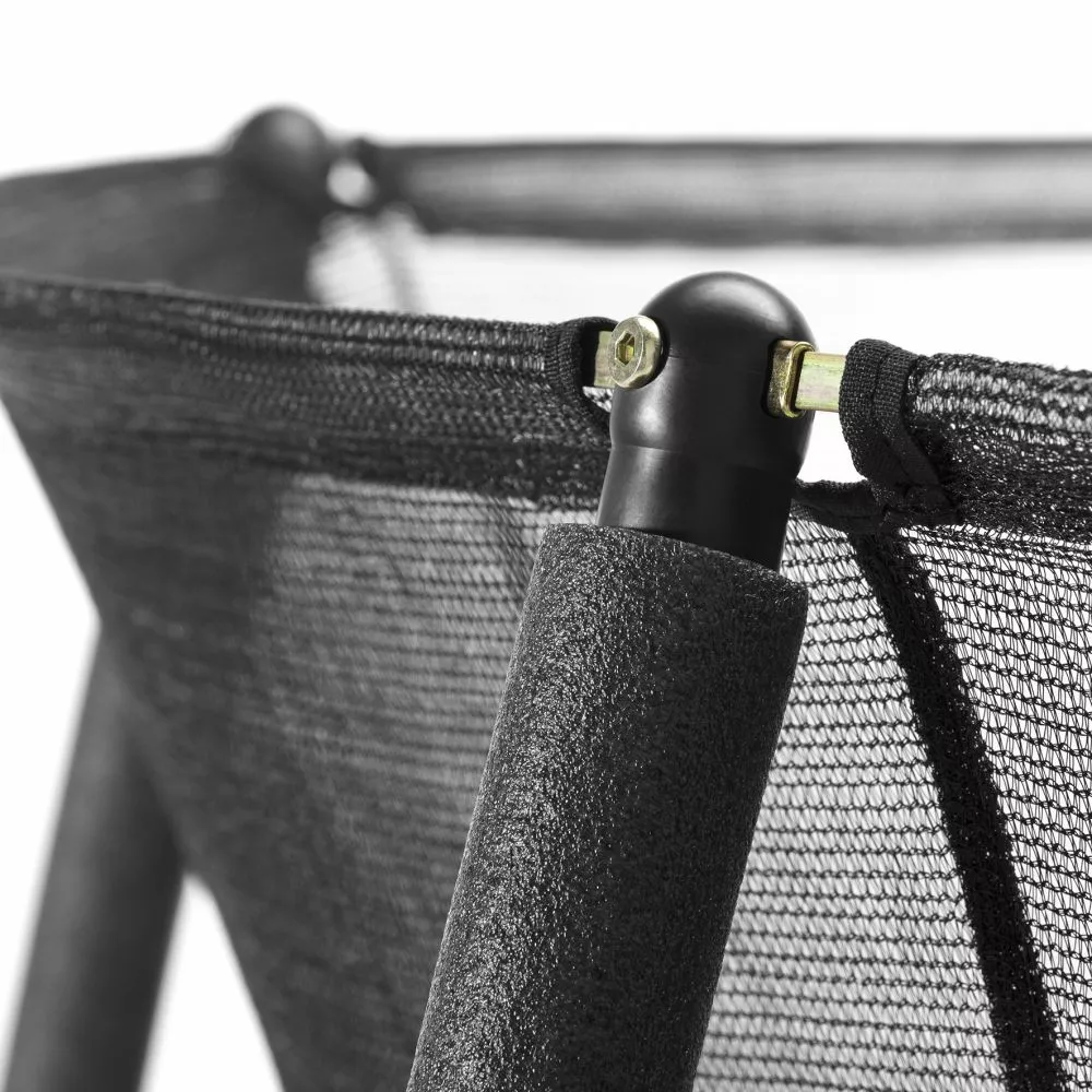 Konstruktionen af stålringen holder sikkerhedsnettet i sin elegante formede position, og det bløde, fintmaskede net forbliver stramt. Derudover har trampolinen en 20 mm tyk og 20 cm bred kantmåtte, så de dobbeltforzinkede koniske fjedre er helt afskærmede. Denne Salta Comfort Edition Ground er delvist begravet i jorden og har kun en højde på 20 cm fra jorden. På grund af den dobbeltsidede lynlås giver trampolinen nem adgang, så du kan komme ind i den sikkert. Salta Comfort Edition Ground tilbyder en unik springoplevelse og mange gode års springoplevelser.