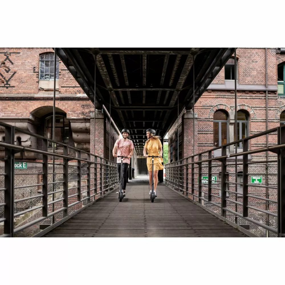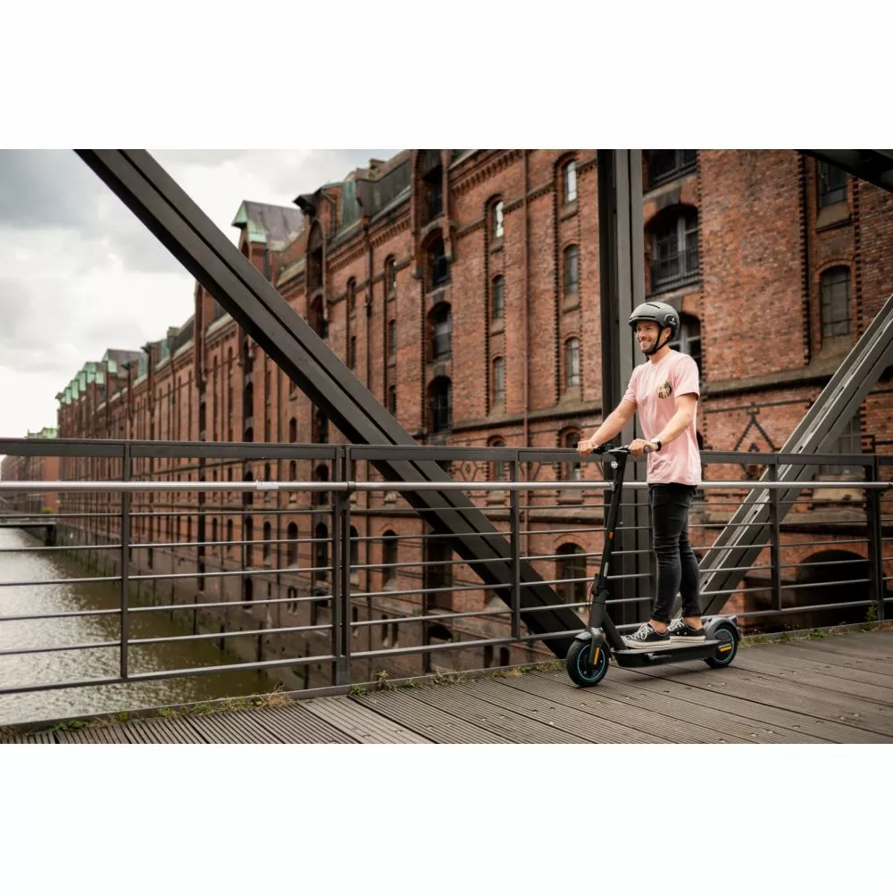 Kom let og hurtigt frem med stil takket være G30D KickScooteren fra Ninebot by Segway. Denne topmodel er det stærkeste og kratigste elektriske løbehjul, der fåes fra Segway. Perfekt til dig, der pendler til og fra arbejde, da løbehjulet er bygget til både asfalt og let terræn. Den kan nemt klare småsten og op til 20% stigning, og de store pneumatiske, slangeløse dæk sørger for en særdeles komfortabel kørsel. Det ekstra gelélag på dækkene sikrer dig mod punkteringer.